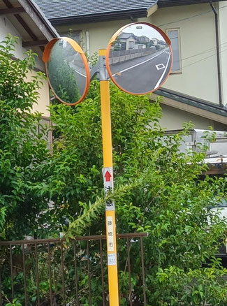 ミラーは道路に立っているのですが、隣接している民家がほとんど空き家になっていて、草が茂って道路にはみ出している状況。